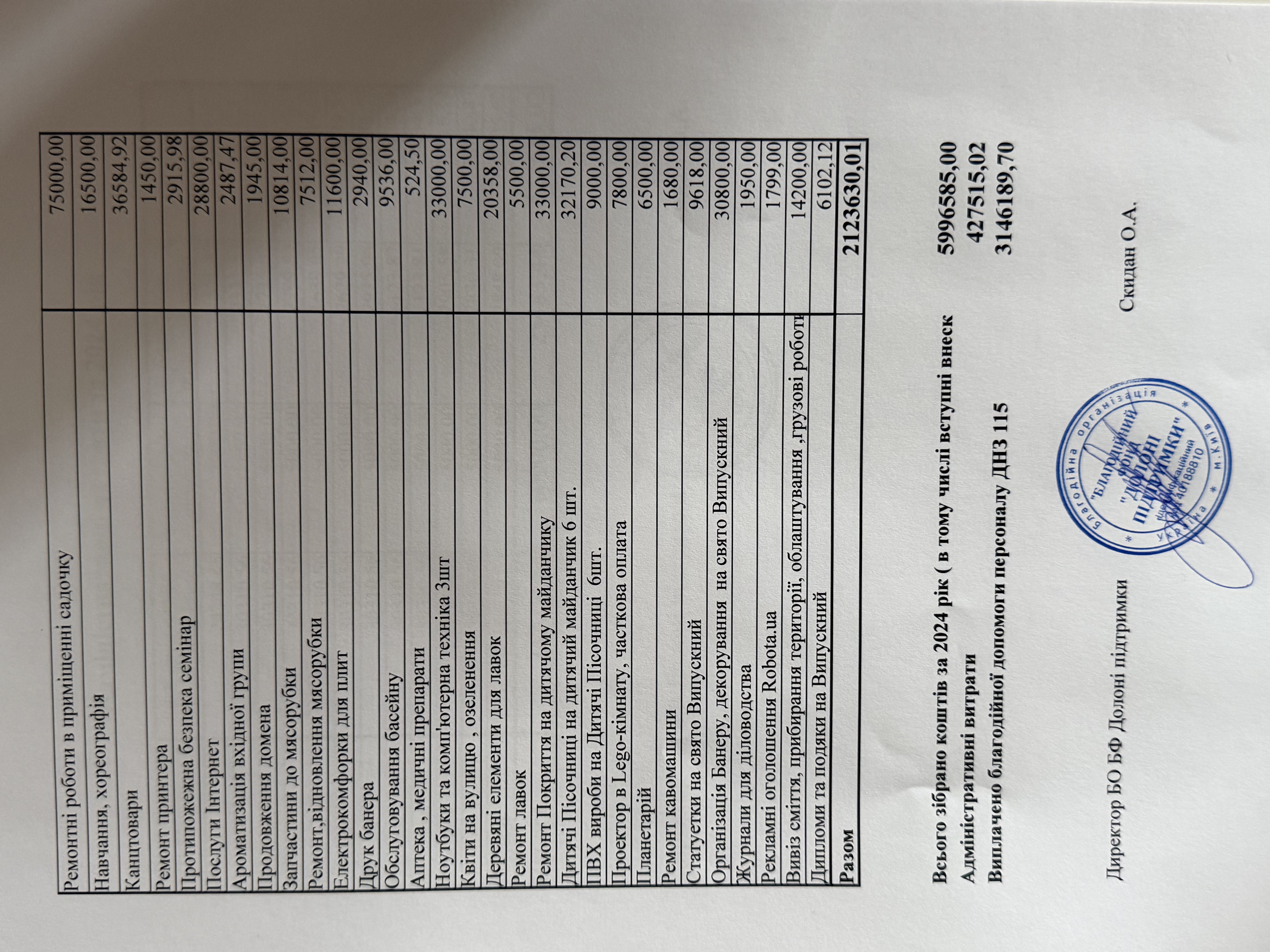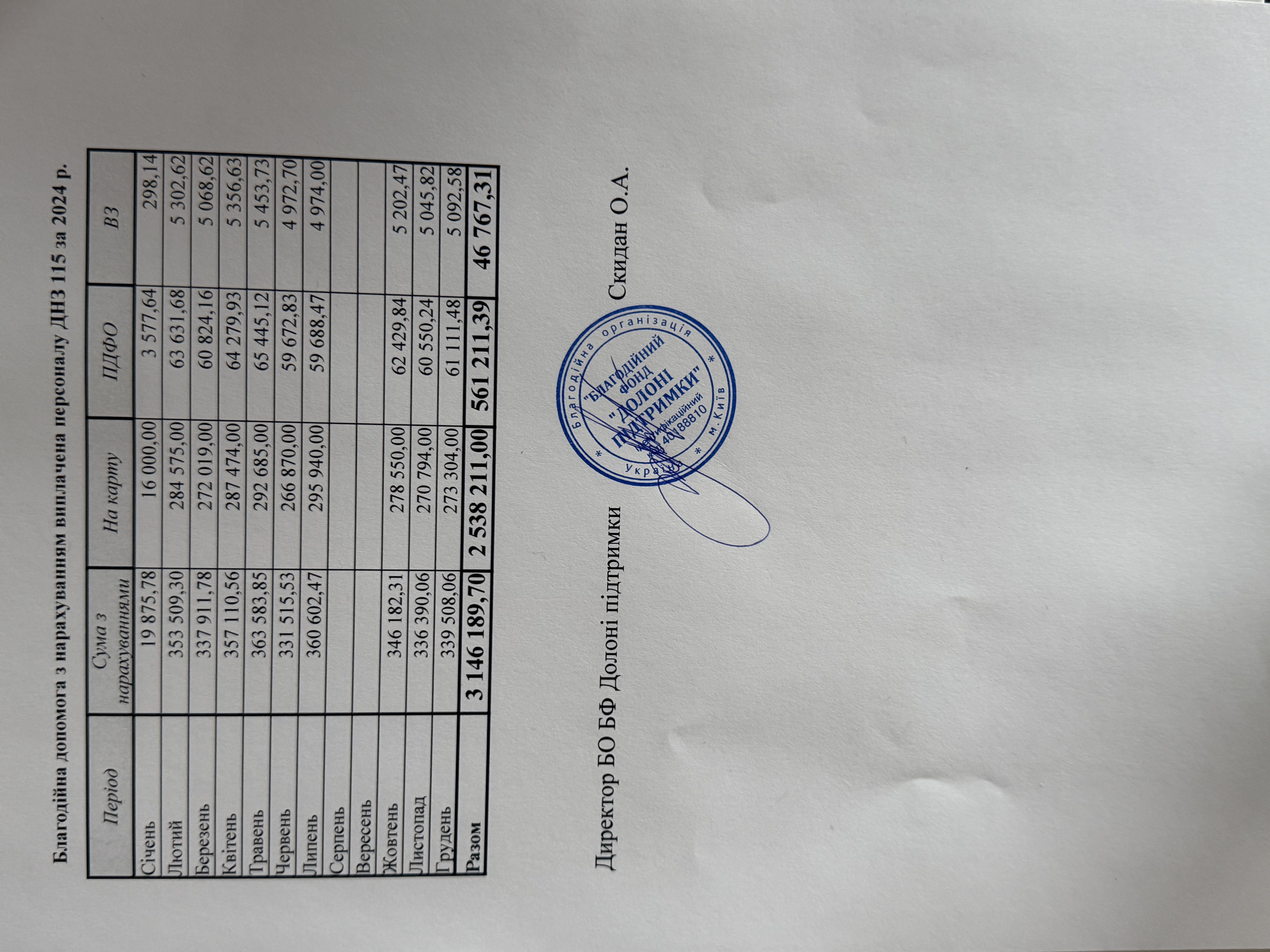 Благодійна допомога з нарахуванням виплачена персоналу ДНЗ №115